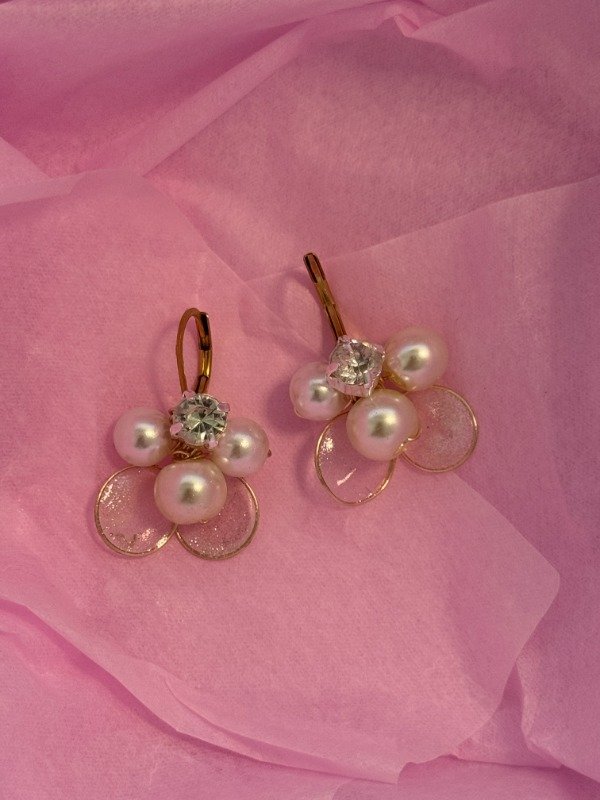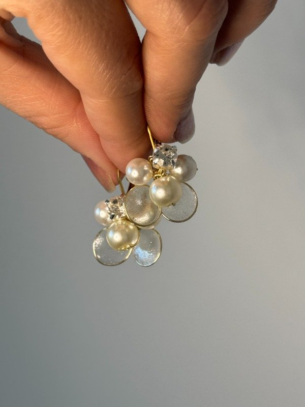 Estos aros son de hojas laqueadas con perlas y detalle de strass.